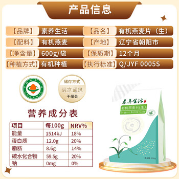 素养生活有机生燕麦片1.2斤 燕麦片 燕麦仁 生燕麦 八宝粥