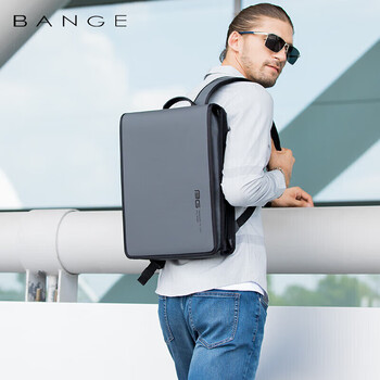 班歌超薄14英寸电脑包简约书包时尚轻便双肩包通勤双肩背包男7252灰