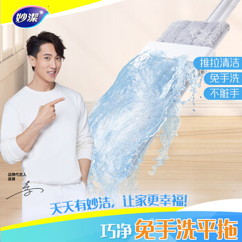 妙洁平板拖把34cm杆长145共2布 家用除尘拖污 免手洗懒拖把