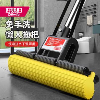 好媳妇胶棉拖把27cm共1棉头 长杆懒人免手洗海绵拖把 家用办公室
