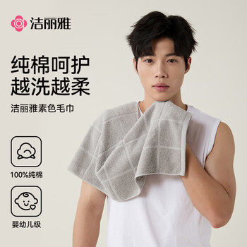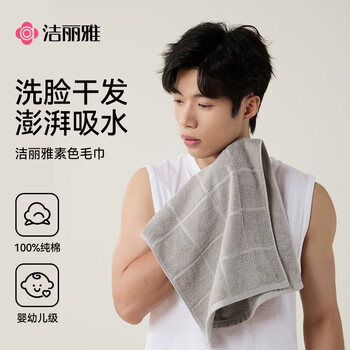 洁丽雅毛巾7A抗菌防螨100%纯棉男士家用新疆棉90克加厚柔软吸水洗澡洗脸