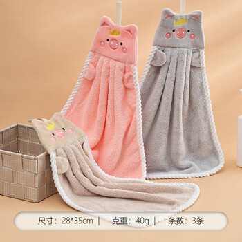 新亚擦手巾珊瑚绒厨房毛巾3条吸水速干挂式擦手小方巾手巾手帕28x35cm