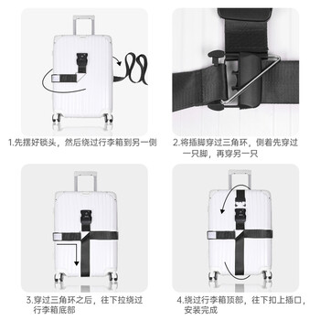 班哲尼十字打包带出国托运拉杆箱捆绑带打包带TSA密码锁扎带行李带锁旅行安全捆箱带黑色