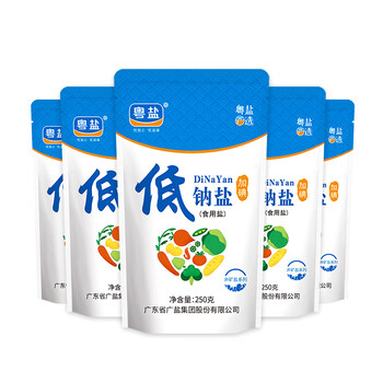 粤盐 低钠盐250g*5袋 【加碘】食用盐 老人儿童钾盐减钠不减咸 调味品