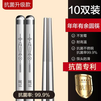 双枪 抗菌不锈钢筷子 升级家用筷防霉防滑套装筷 年年有鱼10双装