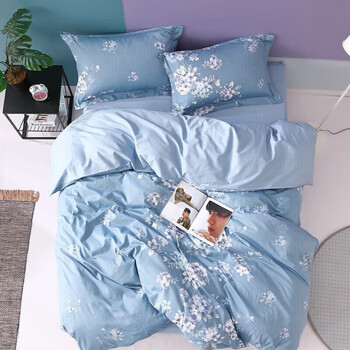 水星家纺四件套床上纯棉100%全棉透气床笠被套双人1.8米x2米床花西雅家居馆