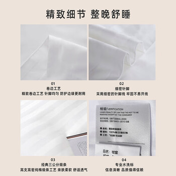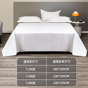 然牌全棉床单单件 60支纯棉加厚白色酒店缎条床罩1.2米床180x230cm