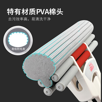 好媳妇海绵拖把家用耐用吸水墩布伸缩长杆刮水神器懒人免手洗双滚轮挤水胶棉地拖1个胶棉头+垃圾袋HD-7109