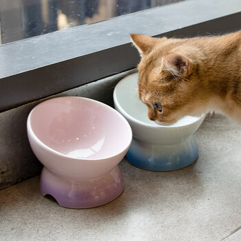 乐优派猫碗陶瓷狗碗猫食盆狗盆宠物碗猫粮碗高脚防打翻猫咪用品 渐变蓝