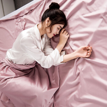 欣沁睡袋旅行隔脏床单60支贡缎酒店防脏床罩加宽便携 藕粉色200*210cm