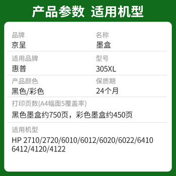 京呈305XL黑色墨盒再生适用惠普HP 2710 2720 2721 2722 2723 2724 6010 6012 6020 6030打印机墨盒