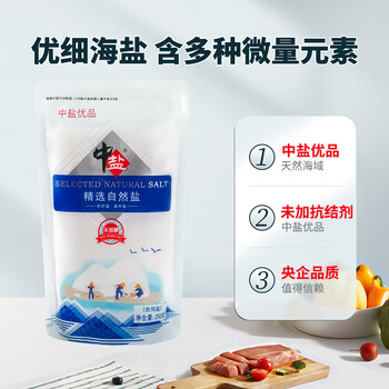 中盐 精选自然盐250g【未加碘 海盐】无碘海盐 炒菜调味 中盐出品