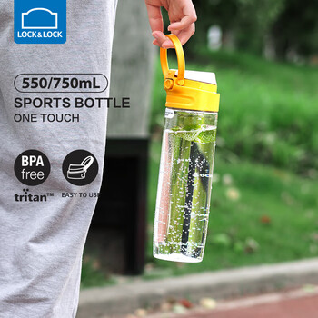 乐扣乐扣(LOCK&LOCK)一键式运动水杯塑料杯户外便携水壶带把手刻度男女杯子蓝色750ml