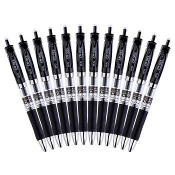 晨光 按动中性笔0.5黑水笔签字笔碳素学生用考试文具用品水性笔 黑色 12支/盒(单位:盒)