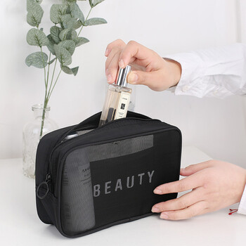 欣沁 旅行网状透气收纳包袋手拿化妆包洗漱包 小号黑色