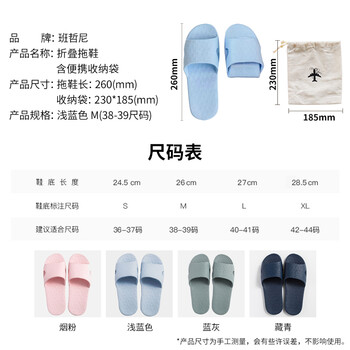 班哲尼 旅行便携式折叠酒店居家EVA防滑浴室情侣洗澡非一次性拖鞋 含便携收纳袋 浅蓝色 M(38-39尺码)