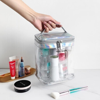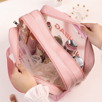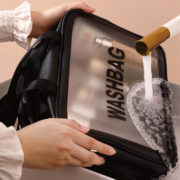 欣沁洗漱包透明PVC化妆包便携大容量收纳包洗漱用品袋黑色双层大号