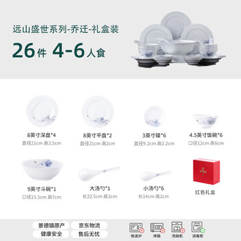 景德镇(jdz)陶瓷餐具整套中式远山家用白瓷碗盘整套高档乔迁新婚礼物送人礼盒