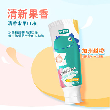 皓齿健(Hosjam)小恐龙益生菌儿童牙膏防蛀含氟3-6-12岁50g(橙味) 小支小克数便携