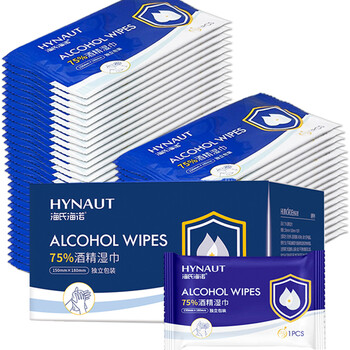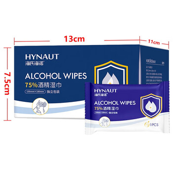 海氏海诺 75%酒精湿巾 一次性消毒酒精棉片大号免洗手湿巾单片独立包装18*15cm*50片/盒 整箱装(40盒/箱)