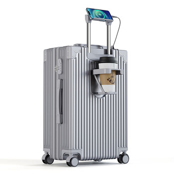 梵地亚行李箱多功能箱包拉杆箱学生大容量旅行密码箱皮箱杯架银色24英寸