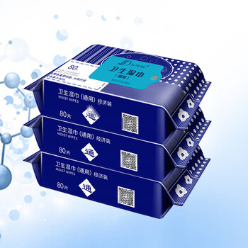 三仕达卫生湿巾80片*3包卫生湿巾洁肤湿纸巾马桶杀菌宠物清洁 不含酒精
