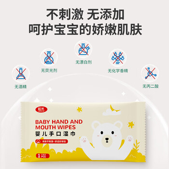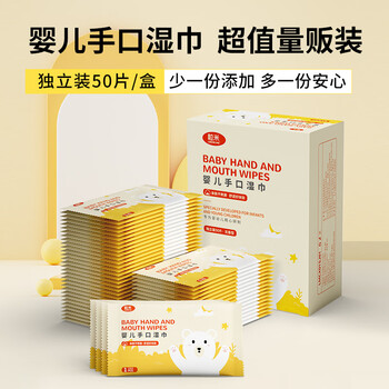 粒米婴儿手口湿巾50片便携装柔湿巾宝宝新生儿湿纸巾加厚珍珠纹洗脸巾