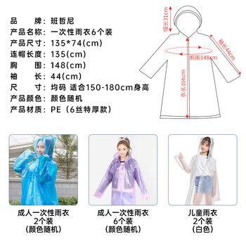 产品名称:一次性雨衣6个装