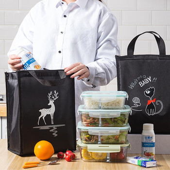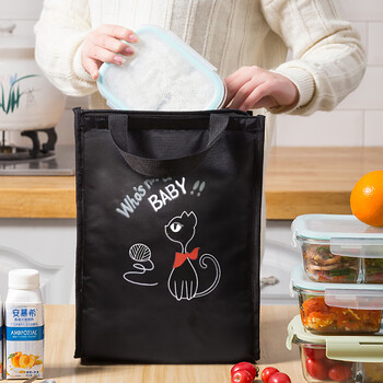 班哲尼 饭盒袋便当包提饭包手提式铝箔保冷保温包储奶袋 大号黑色小猫咪
