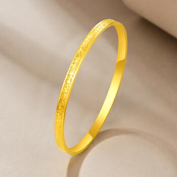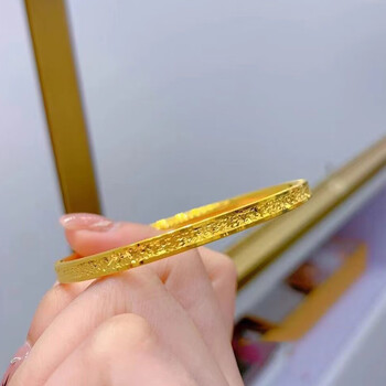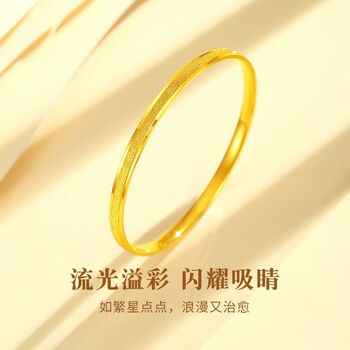 Lossot足金999碎冰冰黄金手镯女士5D金满天星素圈金镯子女友生日礼物