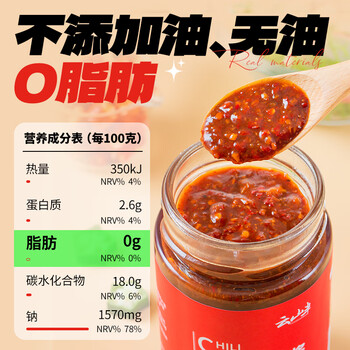 云山半0脂肪辣椒酱250g 鲜椒剁椒下饭酱辣酱0添加蔗糖轻食健身餐拌面酱