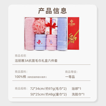毛巾*2 小毛巾*2 浴花*1 棉柔巾*1 礼盒*1