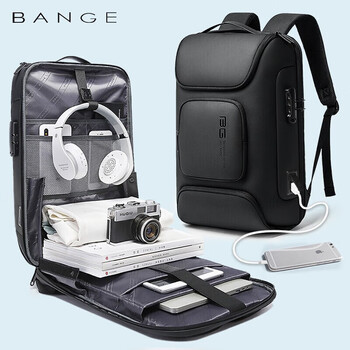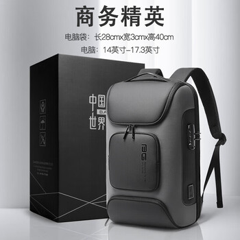 班歌Bange 背包男双肩包大容量17.3英寸电脑包 时尚潮流多功能大学生书包防盗密码锁旅行包BG-7216Plus灰色