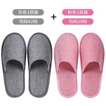 班哲尼 一次性拖鞋待客地板拖鞋 男女旅行出差酒店宾馆美容院防滑亚麻棉布拖鞋 混装6双