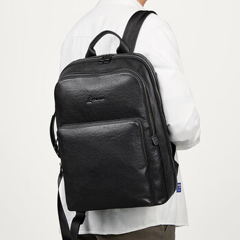 L'ALPINA意大利双肩包男头层牛皮商务背包15.6英寸电脑休闲书包开学季礼物