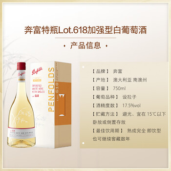 奔富(Penfolds)Lot.618 加强型白葡萄酒特瓶 750ml 单支礼盒装 正品行货