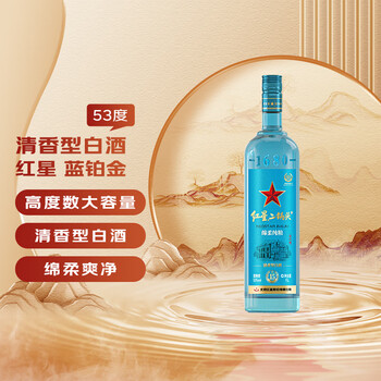 红星二锅头蓝铂金 清香型白酒 53度 1000ml 单瓶装 纯粮口粮 热门商品
