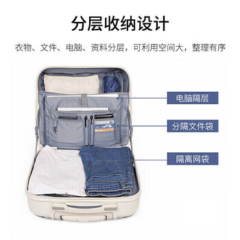 莎米特行李箱16英寸 小型静音万向轮防刮高档商务登机拉杆箱PC338米白