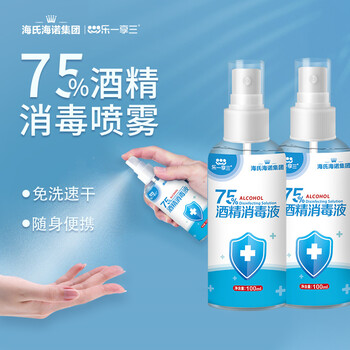 乐一享三 75%酒精消毒液 海氏海诺便携清洁消毒液 100ml/瓶 20瓶/件