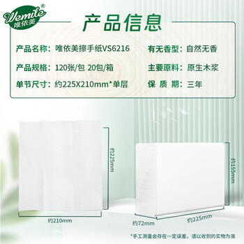 唯依美擦手纸1层120抽*20包商用酒店卫生间厨房卫生纸巾 整箱 VS6216