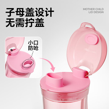 特百惠(Tupperware)晶彩mini塑料杯280ML 男女学生夏季水杯子儿童双饮口便携 蜜桃粉