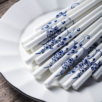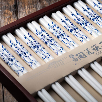 友来福陶瓷筷子10双装中式高档套装个性防滑耐高温酒店家庭用礼盒装