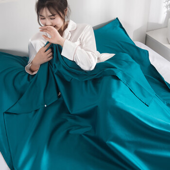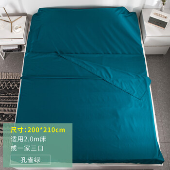 欣沁睡袋旅行隔脏床单60支贡缎酒店防脏床罩加宽便携 孔雀绿120*210cm