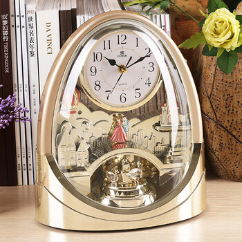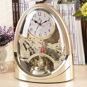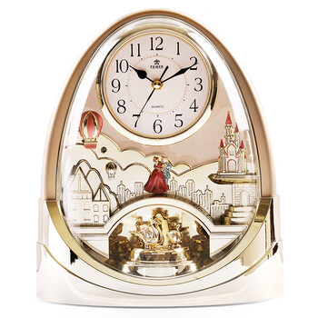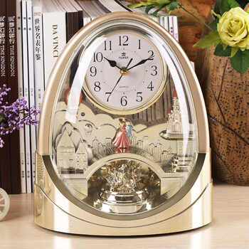 POWER 霸王转摆音乐台钟精致工艺家居客厅摆件座钟钟表4212ARMKS 金色