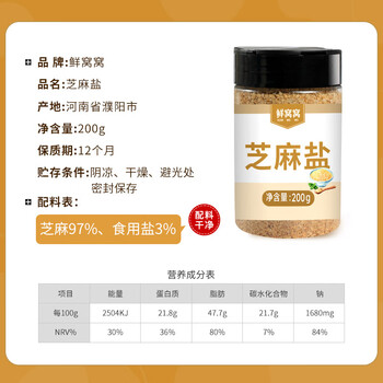鲜窝窝 芝麻盐200g 咸味炒熟白芝麻盐即食拌面拌饭烧烤蘸料撒料河南特产