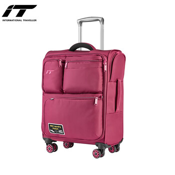 INTERNATIONAL TRAVELLER英国IT拉杆箱登机旅行箱万向轮超轻行李箱多口袋20英寸软箱1157红