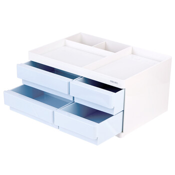 得力(deli)8904 多功能桌面小清新收纳盒 带抽屉组合式票据储物盒 浅蓝 单个装
