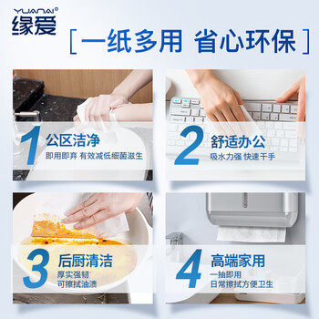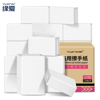 缘爱擦手纸1层120抽*10包商用抽纸厨房纸巾干手纸抹手纸独立包装整箱