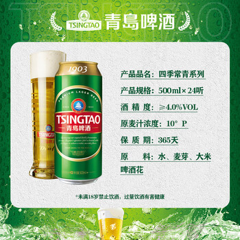 青岛啤酒(Tsingtao)经典(1903)500ml*24听 大罐整箱装 口感醇厚