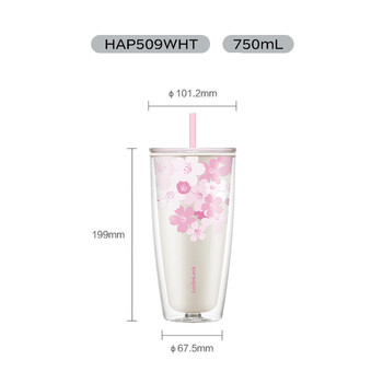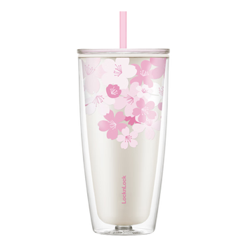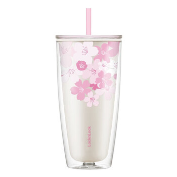 乐扣乐扣(LOCK&LOCK)双层吸管塑料杯趣味樱花夏日畅饮便携水杯750ML白色(赠吸管刷)